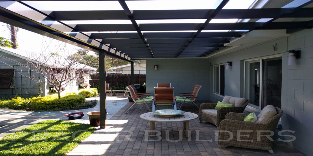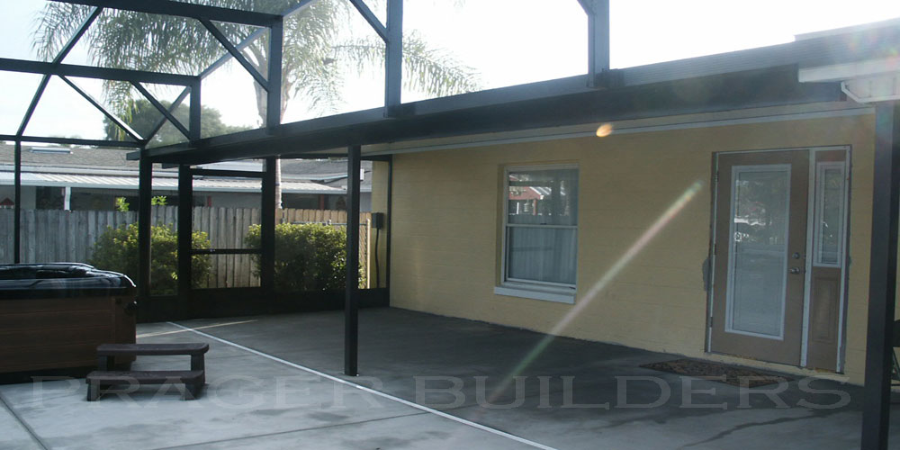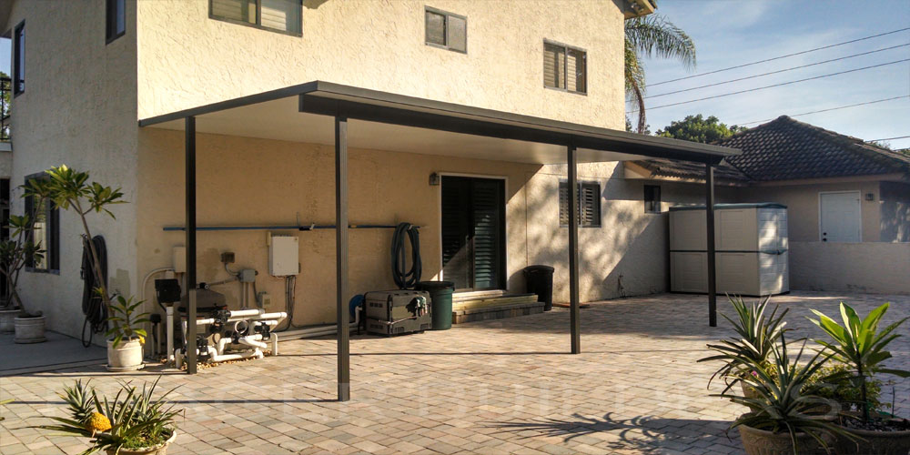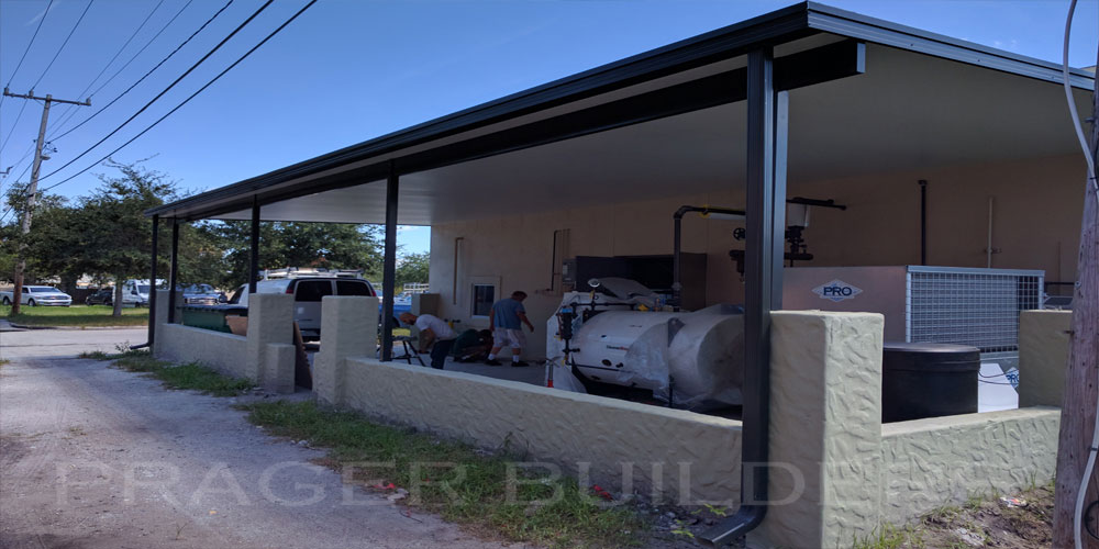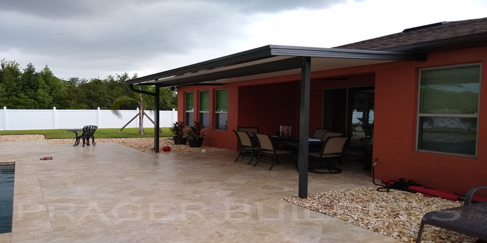 Patio Cover Orlando Florida This patio cover was set into existing pavers without damaging the appearance. It provided protection to the pool equipment from wind and rain.