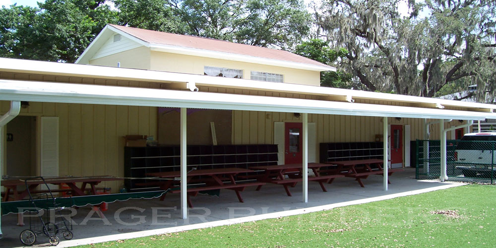 Seating Area Cover Maitland Florida Insulated roof with post and beam were used to create this practical bus waiting area for the students of Maitland Park School. It remains cool and dry beneath regardless of the season. In the past, we have been called upon to install several aluminum projects at the school with terrific results. Patio covers, screen rooms and insulated aluminum roofs have been added to the campus over the past several years.